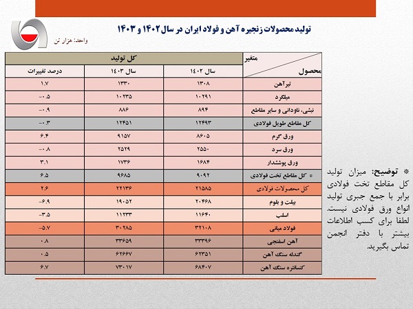 انجمن تولیدکنندگان فولاد ایران، آمار تولید فولاد کشور در ۱۲ ماهه سال ۱۴۰۳ را منتشر کرد