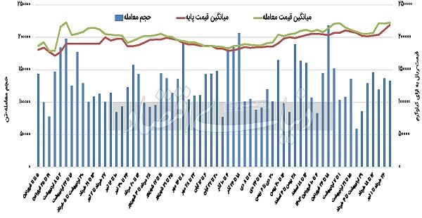 معاملات شمش در بازار فیزیکی روز ۴ تیرماه در بازه قیمت پایه ۲۱هزار و ۴۶۸تومان تا ۲۲هزار و ۳۵۳تومان به ازای هر کیلوگرم انجام شد. بررسی معاملات دو هفته متوالی نشان میدهد که میانگین قیمت پایه هفتهجاری نسبت به هفته گذشته ۳.۵درصد افزایش داشتهاست.