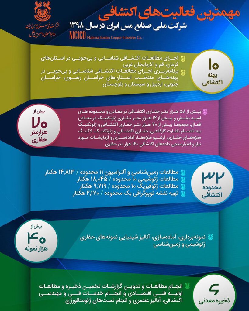 در دادهنمای پیشِ رو مهمترین فعالیتهای اکتشافی شرکت مس در سال ۹۸ را میبینید.
