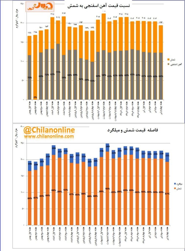 نسبت قیمت آهن اسفنجی به شمش فولادی که در تیرماه در سطح ۶۰ و ۶۱ درصد به ثبت ...