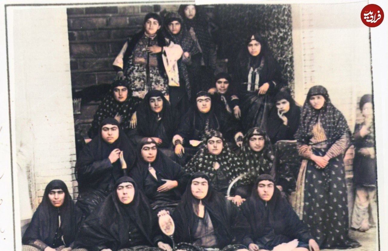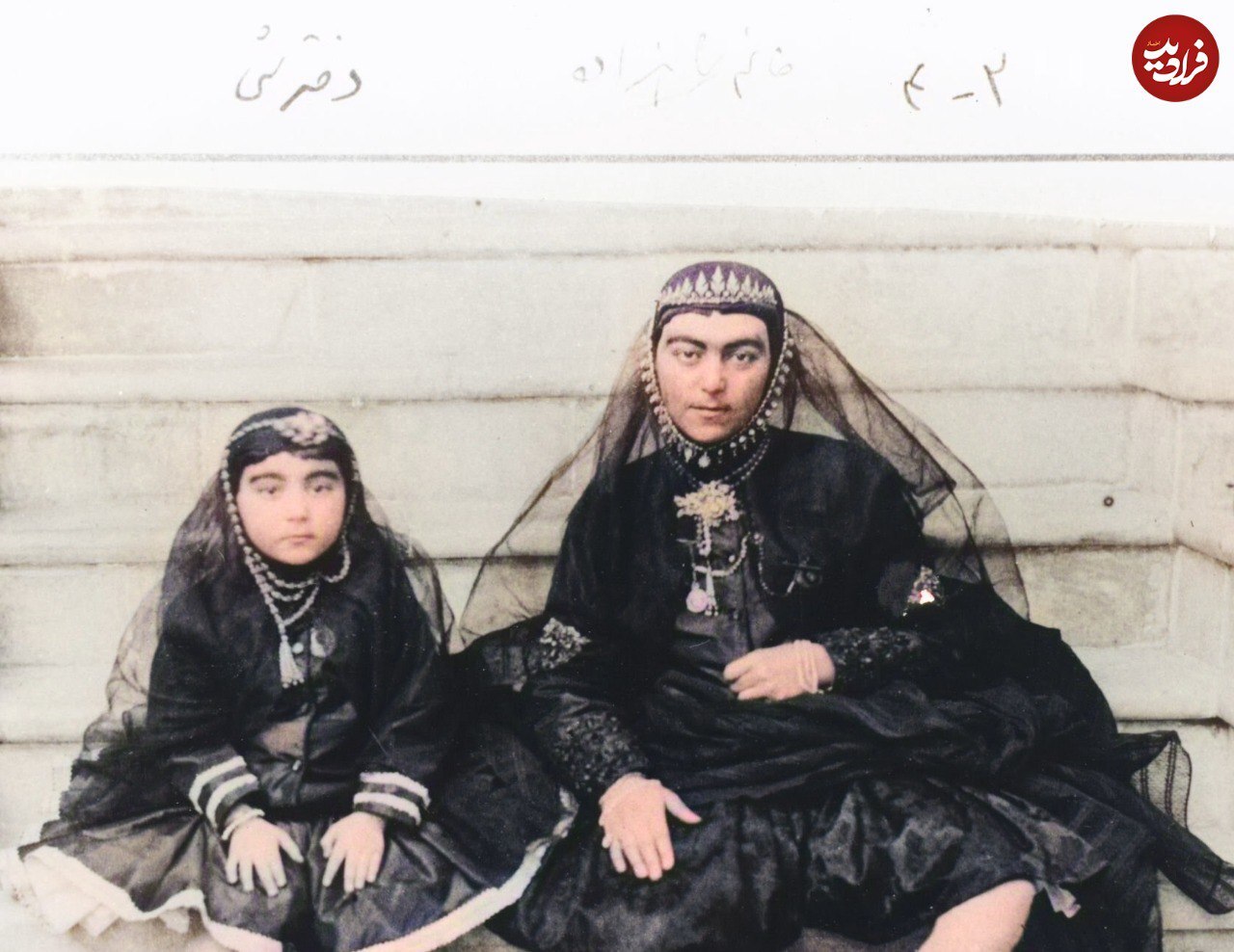 تصویری رنگی از درون حرمسراهای قاجار: در اینجا تعدادی از عکسهای رنگیشدۀ مربوط به حرمسرای ناصرالدینشاه قاجار را ملاحظه میکنید. در این عکسها تعدادی از زنان و دختران شاه (از جمله انیسالدوله، تاجالدوله و عصمتالدوله) به همراه خدمۀ حرمسرا و فرزندانشان حضور دارند. مکان عکسها نیز متنوع است؛ از کاروانسرایی در مسیر قم گرفته تا محیطهای مختلف کاخ و تفرجگاههای سلطنتی.تصویری رنگی از درون حرمسراهای قاجار